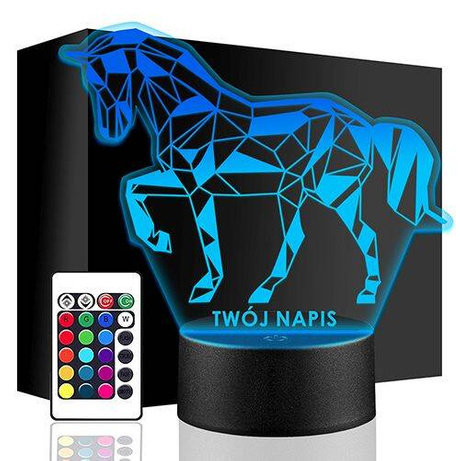 LAMPKA NOCNA KOŃ KONIK 3D LED KOLORY + PILOT z własną dedykacją