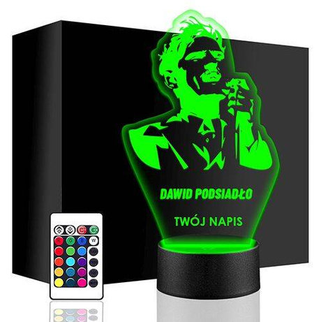 LAMPKA NOCNA LED DAWID PODSIADŁO 3D + PILOT prezent URODZINY statuetka