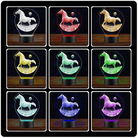 LAMPKA NOCNA LED KOŃ KONIK JEŹDZIECTWO 3D +PILOT prezent URODZINY statuetka