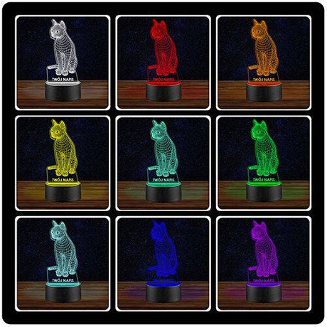 LAMPKA NOCNA 3D LED KOLORY + PILOT z własną dedykacją