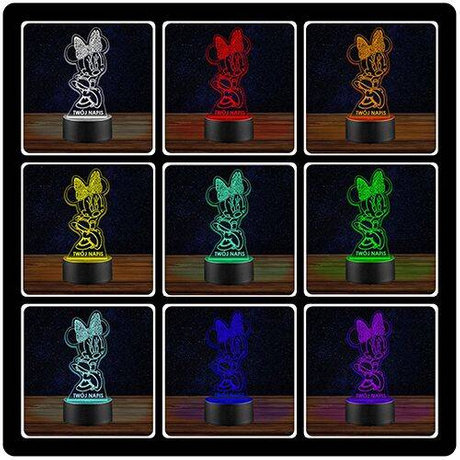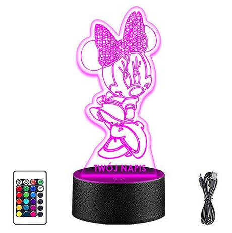 LAMPKA NOCNA LED MYSZKA MINNIE 3D + PILOT prezent URODZINY statuetka