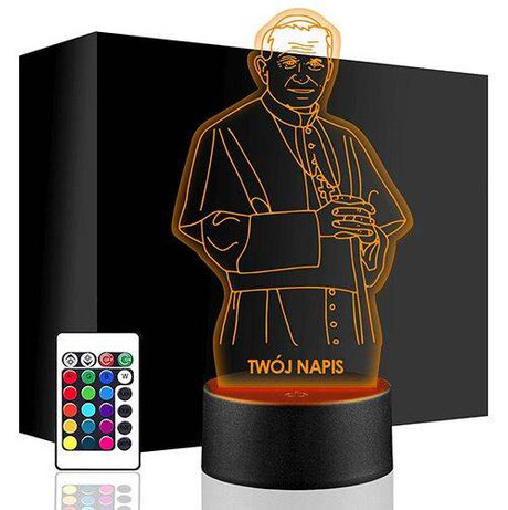 LAMPKA NOCNA PAPIEŻ JAN PAWEŁ II 3D LED KOLORY + PILOT