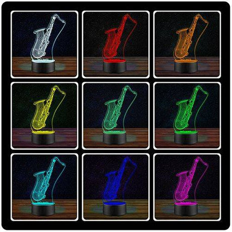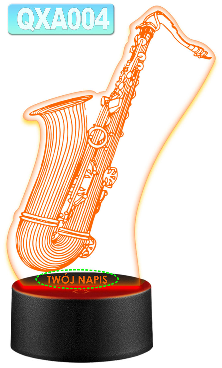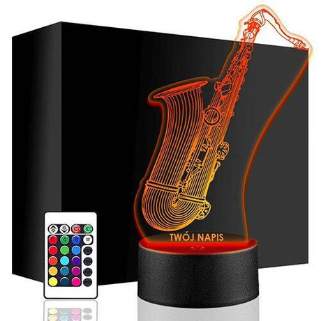 LAMPKA NOCNA LED SAKSOFON INSTRUMENT 3D + PILOT prezent URODZINY statuetka