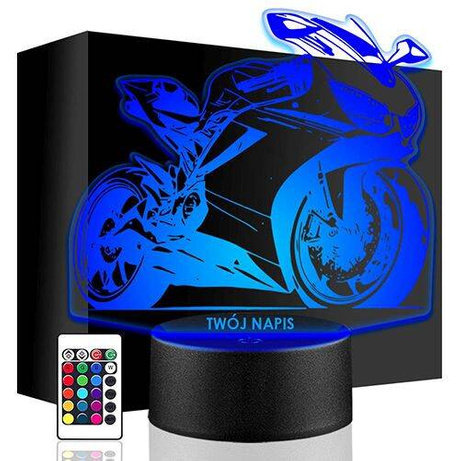 | Nazwa: | LAMPKA NOCNA LED ŚCIGACZ MOTOR 3D + PILOT prezent URODZINY statuetka |