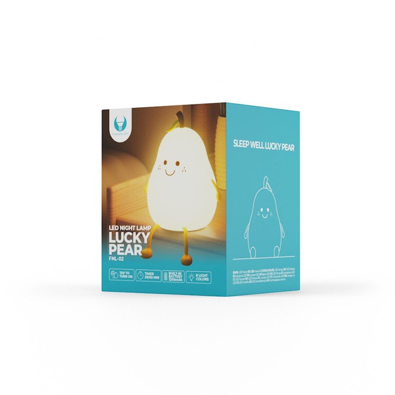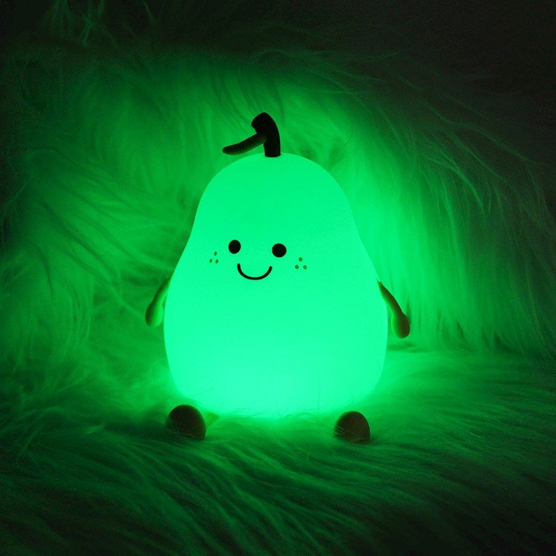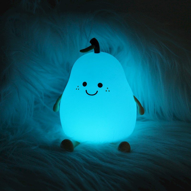 Lampka nocna LED od Forever Light przedstawiająca Wesołą Gruszkę, została wykonana z wysokiej jakości silikonu. To przyjemna w dotyku lampka nocna z funkcją timera 30 i 60 minut oraz możliwością wyboru spośród ośmiu kolorów świecenia. Dzięki funkcji timera 30-minutowego lub 60-minutowego, można zostawić lampkę włączoną, a po upływie ustalonego czasu, sama się wyłączy. Jest to doskonałe rozwiązanie dla dzieci, które boją się spać w ciemności, a także stanowi świetne źródło światła podczas przygotowań do snu.