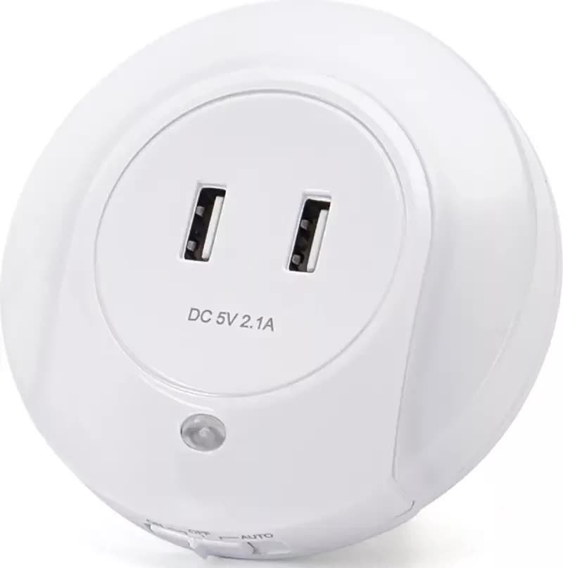 | Nazwa: | Lampka Nocna Led Z Czujnikiem Nocy I Dwoma Portami Ładowarki Usb 2.1A |