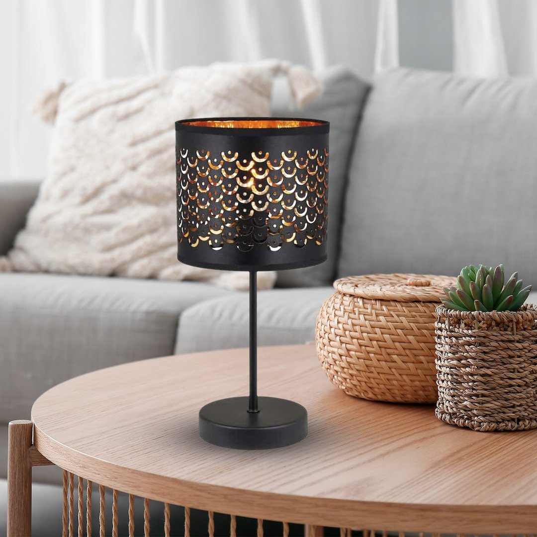 Lampka nocna MORGAN to wyjątkowy dodatek do sypialni lub salonu, który łączy w sobie funkcjonalność i wyrafinowany design. Jej ażurowy klosz w kolorze czarnym, z ciepłym złotym wnętrzem, wypełnia pomieszczenie przyjemnym, nastrojowym światłem, tworząc atmosferę sprzyjającą relaksowi. Subtelna, a zarazem wyrazista forma lampki MORGAN doskonale wpasuje się zarówno w nowoczesne, jak i klasyczne wnętrza. Stabilna podstawa zapewnia komfort użytkowania, a starannie wykonane detale podkreślają jej wysoką jakość.