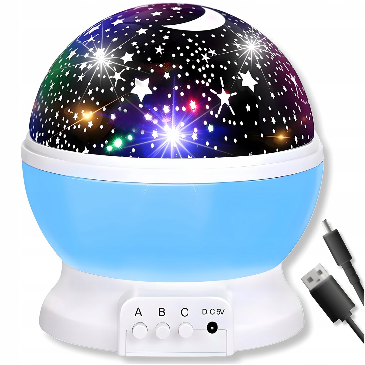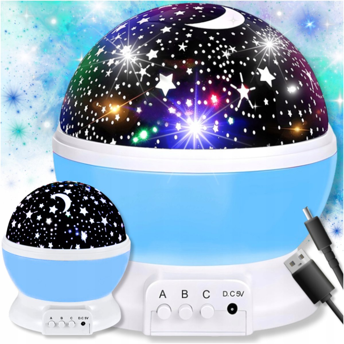 LAMPKA NOCNA PROJEKTOR GWIAZD NIEBA KSIĘŻYCA 2w1 OBROTOWA 360 DLA DZIECKA⭐️GWIEZDNE NIEBO W TWOIM POKOJU⭐️Odkryj magię gwiazd z naszym projektor gwiazd. Ta innowacyjna lampka nocna nie tylko oświetli