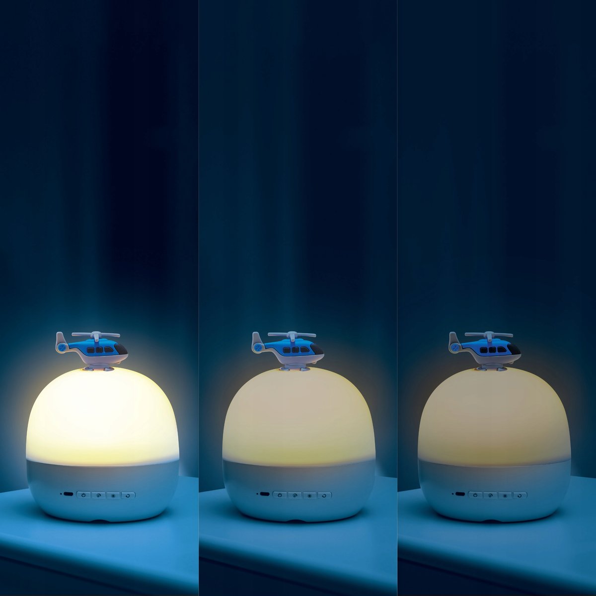 - Lampka nocna LED – delikatne, przyjemne światło idealne do stworzenia atmosfery relaksu i odpoczynku. Wybierz jedną z trzech barw światła (ciepła, chłodna, niebieska) i dostosuj jasność do własnych potrzeb dzięki trójstopniowej regulacji.