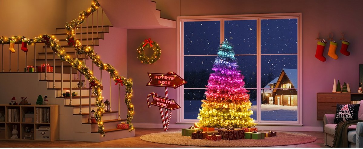 ✅Łańcuch świetlny SuperLED to rewolucyjne, inteligentne lampki choinkowe LED RGB o długości 10m z 100 diodami LED, które korzystają z najbardziej zaawansowanej technologii do dekoracji świątecznej.