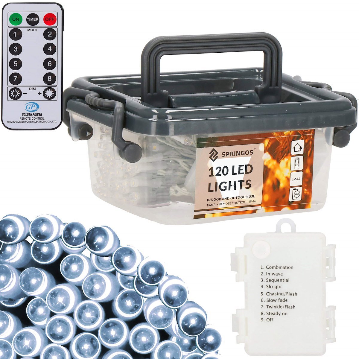 | Nazwa: | Lampki choinkowe 120 Led biały zimny z programatorem i pilotem na baterie |