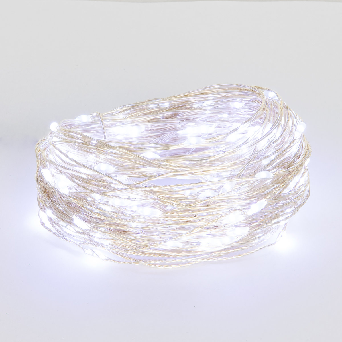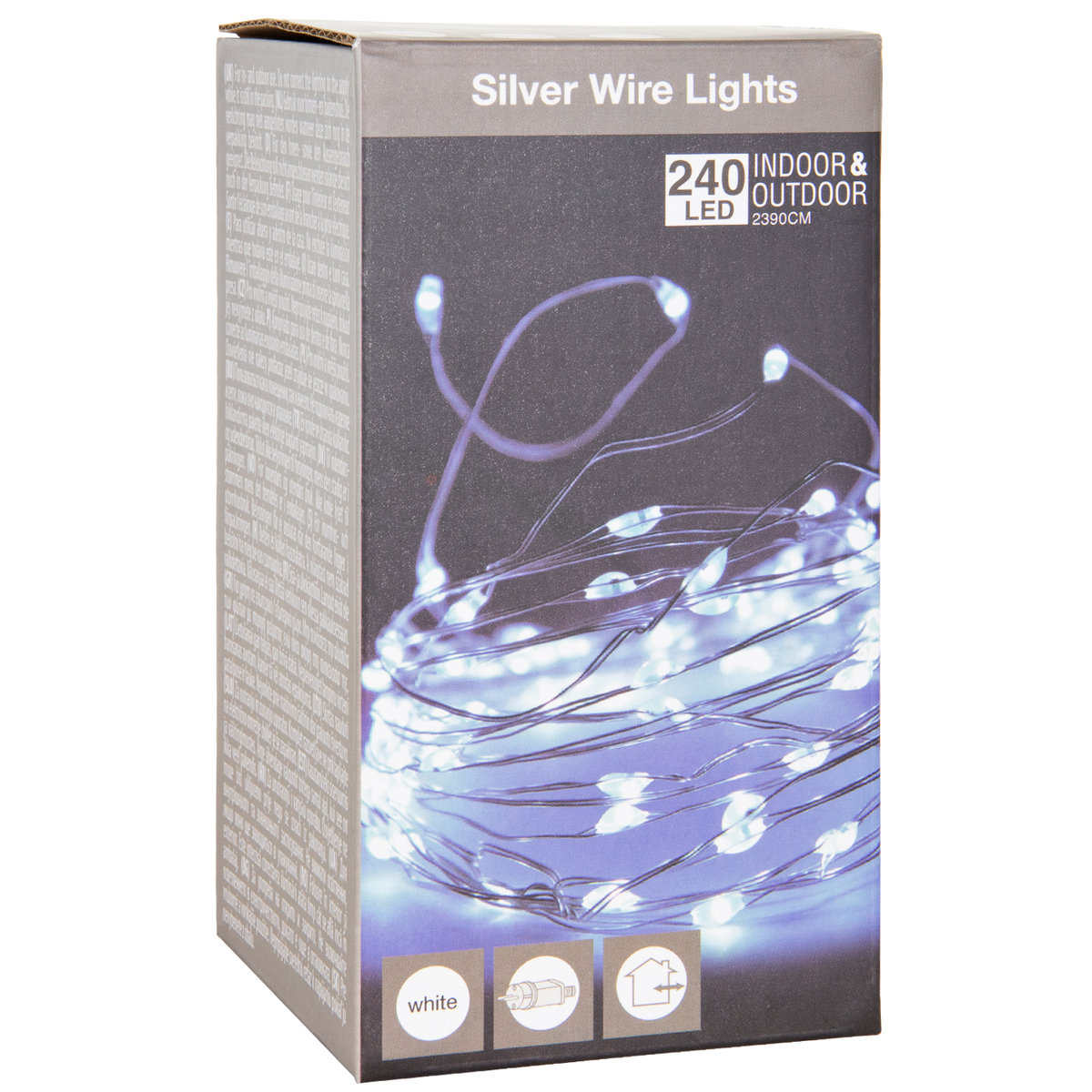 Cechy produktu: 240 LED chłodne białe światło rozmieszczenie diod co 10 cm 3 m kabel zasilający długość zestawu 24 m zasilanie sieciowe miękki drut dający się dowolnie formować kolor drutu: srebrny ...