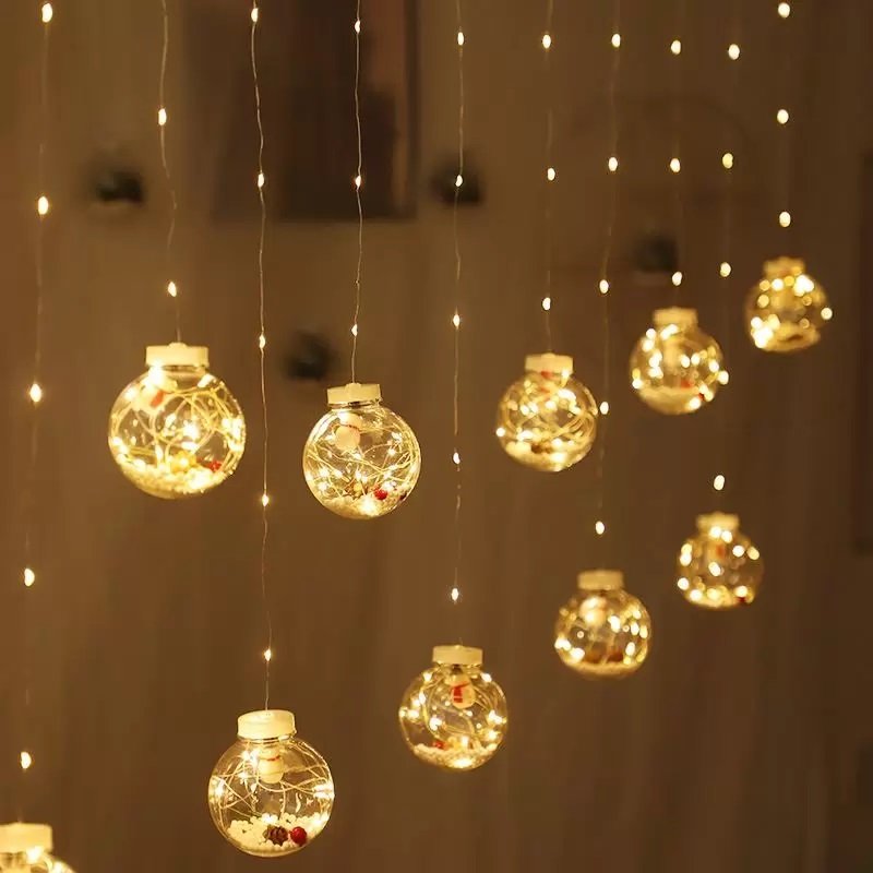 Lampki świąteczne Bombki z Figurkami 108LED kurtyna świetlna Specyfikacja techniczna: Liczba LED: 108 Średnica kuli: 8cm Długość odcinka świetlnego: 3m Długość części zwisającej: 40-60cm ...