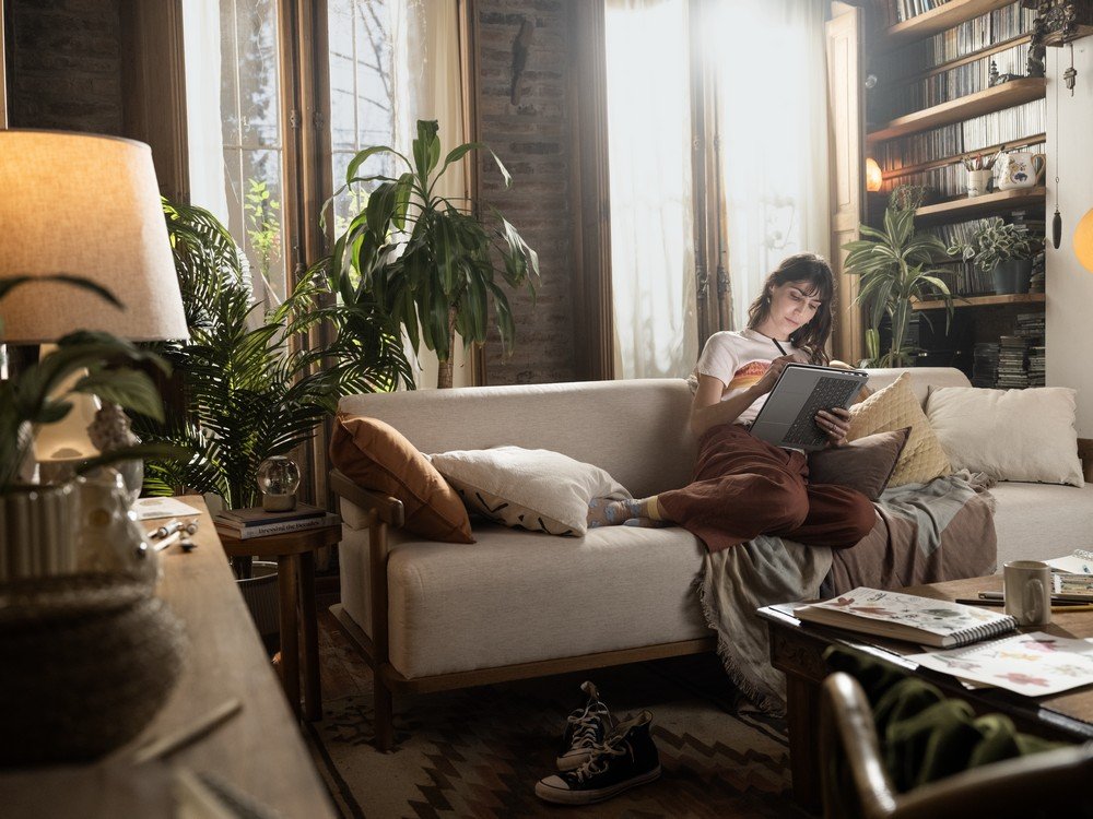 Wyświetlacz 2K IPS o przekątnej 14 cali i rozdzielczości 1920×1200 prezentuje obraz z naturalnymi kolorami i szerokimi kątami widzenia, a szklana, bezramkowa konstrukcja micro-edge dodaje mu lekkości. Obsługa dotykowa oraz kompatybilność z piórem HP Rechargeable Pen umożliwiają rysowanie, notowanie i precyzyjne sterowanie. Wysokiej klasy głośniki z technologią HP Audio Boost gwarantują czysty dźwięk, a kamera 5MP IR z funkcją rozpoznawania twarzy Windows Hello dba o bezpieczeństwo i świetną jakość wideorozmów.