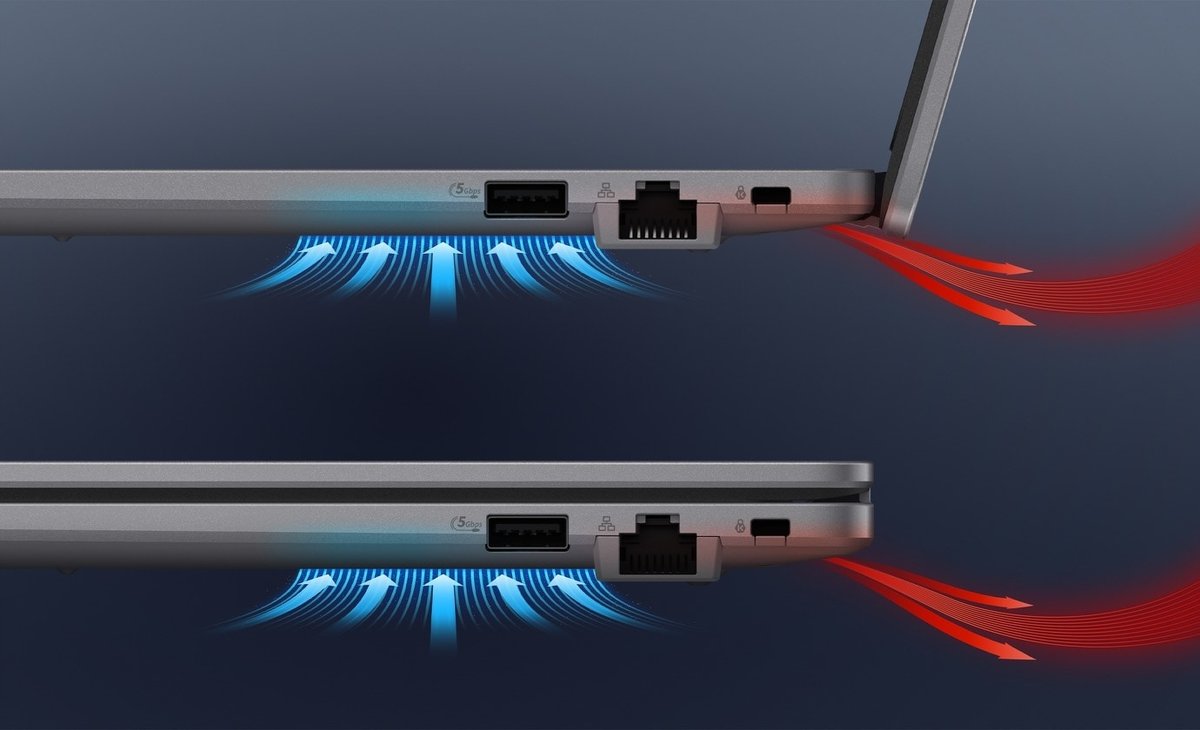 ASUS ExpertBook P1 dysponuje również udoskonalonym systemem chłodzenia, zapewniając stałą, optymalną wydajność zarówno z otwartą, jak i zamkniętą pokrywą. Gwarantuje to maksymalną wydajność nawet podczas długotrwałego użytkowania. Ponadto dzięki konstrukcji ExpertCool ciepło jest kierowane na tył urządzenia, dzięki czemu ciepłe powietrze nie dociera do Twojej dłoni, gdy używasz myszki.
