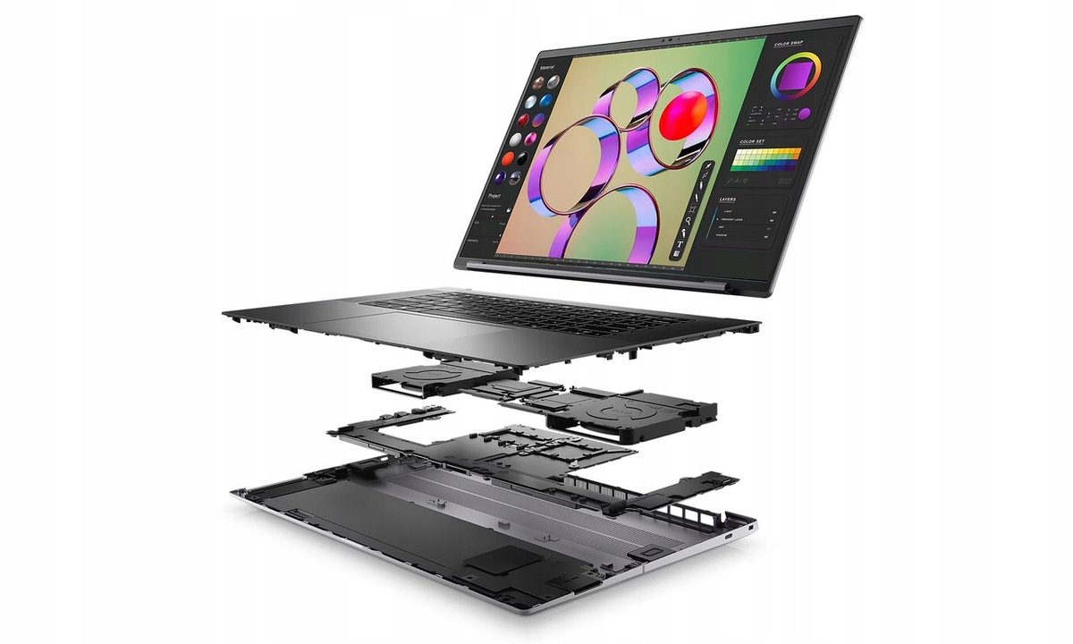 Dell Precision 5680 łączy bardzo wysoką wydajność z mobilnością – waży ok. 1,9 kg i ma baterię 66 Wh, co pozwala na wielogodzinną pracę bez zasilacza. Obudowa z aluminium klasy premium w kolorze Titan Gray jest smukła, solidna i spełnia wybrane normy MIL-STD-810H. Mimo obecności mocnego CPU i GPU, układ chłodzenia z komorą parową i podwójnym wentylatorem skutecznie odprowadza ciepło, zachowując cichą pracę. Laptop nie nagrzewa się w miejscach kontaktu z dłońmi i pozwala na komfortową pracę nawet pod dużym obciążeniem. To świetny wybór dla profesjonalistów, którzy potrzebują mobilnej stacji roboczej o najwyższej kulturze pracy.