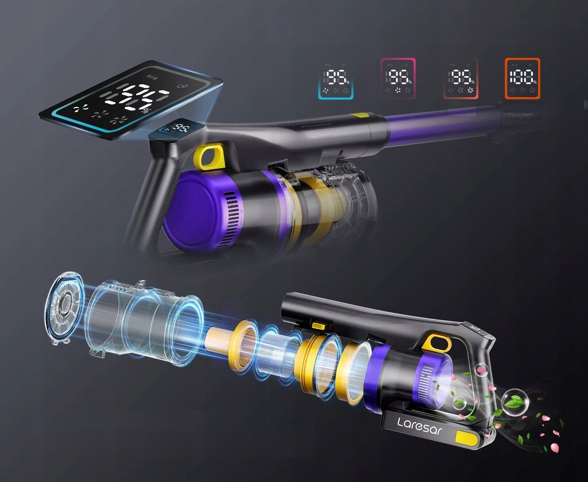 Odkurzacz Laresar X11 wyposażony jest w kompletny system filtracji, który skutecznie wychwytuje cząsteczki nawet o wielkości 0,3 mikrona – idealny dla alergików i osób dbających o czyste powietrze w domu. ️