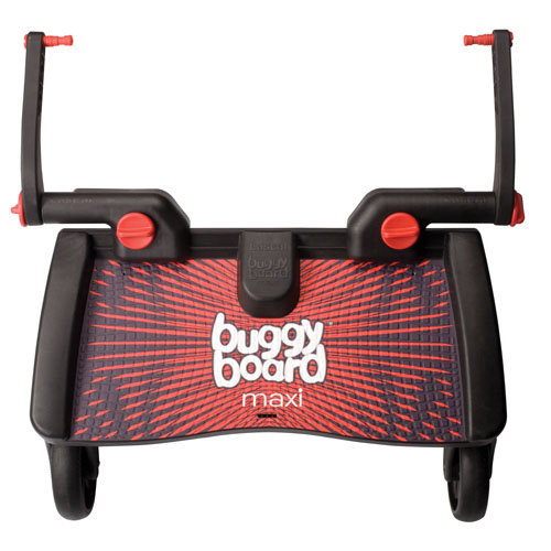 - BuggyBoard-Maxi został przystosowany do mocowania na bocznych, pionowych rurkach spacerówek i na obramowaniach wózków o rozstawie mieszczącym się w granicach 31-54 cm