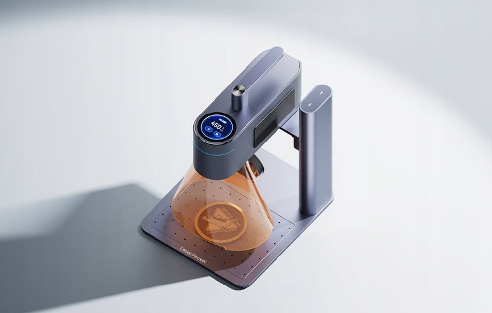 Mimo swoich niewielkich rozmiarów model LaserPecker 2 jest wyjątkowo wydajny. Jego kompaktowa konstrukcja ułatwia przenoszenie i pozwala na grawerowanie w miejscach, do których trudno dotrzeć innymi urządzeniami. Elektryczna podstawka to kolejny atut grawerki. Umożliwia ona precyzyjną regulację ogniskowej za pomocą bocznych przycisków, co zwiększa dokładność i jakość grawerowania. Dodatkowo możliwość utrzymania lasera pod wybranym kątem pozwala na optymalne dostosowanie do grawerowanej powierzchni.