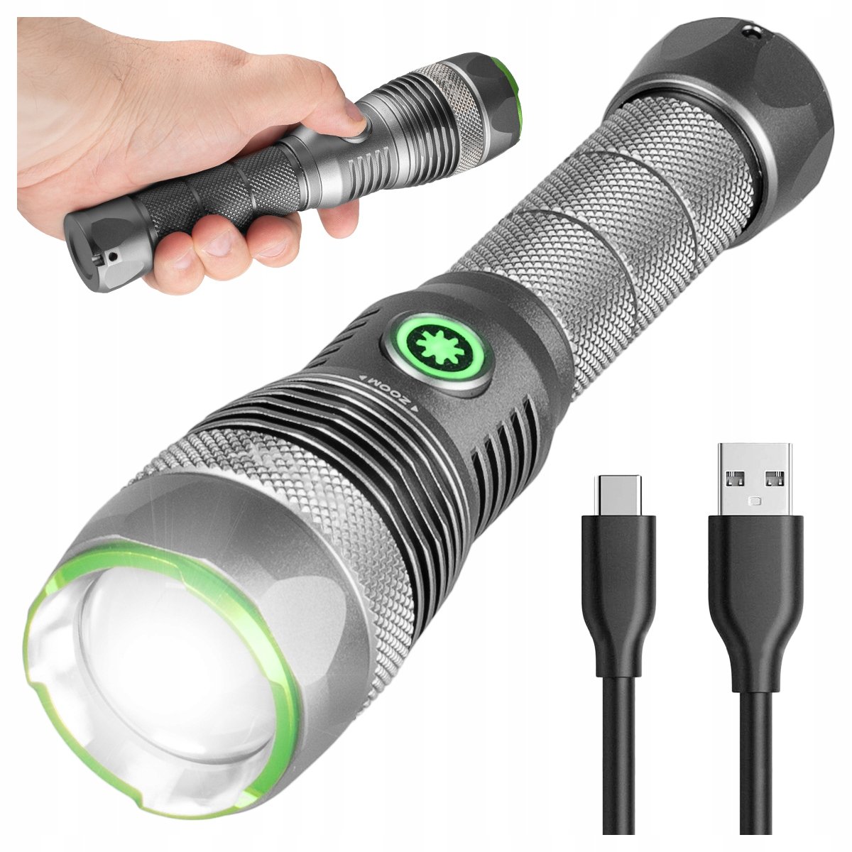 - Regulowany zoom: W zależności od twoich potrzeb latarka może generować światło rozproszone lub punktowe