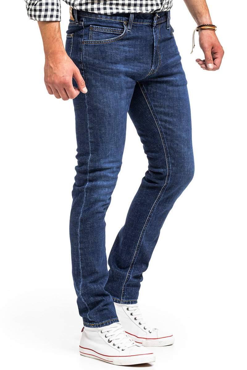 Jeansy dla mężczyzn Lee Luke DK Worn Kansas to dopasowane do sylwetki spodnie typu slim tapered. Spodnie „tapered”, zwane niegdyś marchewkami, ponownie wracają do łask i wkraczają na salony. Ten model LEE LUKE charakteryzuje się długimi nogawkami zwężanymi ku dołowi. Są to jeansy z regularnym (średnim) stanem zapinane na zamek błyskawiczny. Posiadają pięć kieszeni. Dwie z tyłu oraz trzy z przodu.