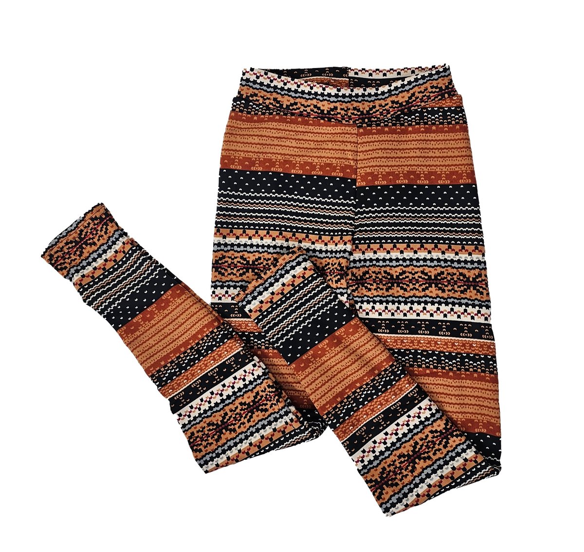Ocieplane legginsy w etniczne wzory to idealny wybór na chłodniejsze dni. Dzięki zastosowaniu wewnętrznej warstwy ocieplającej, legginsy zapewniają pełen komfort cieplny, jednocześnie podkreślając sylwetkę i dodając stylu każdej zimowej stylizacji. Wzorzysta tkanina w odcieniach brązu, czerni i pomarańczu sprawia, że legginsy doskonale komponują się z gładkimi elementami garderoby, tworząc oryginalny look.