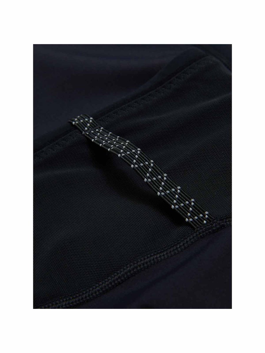 Lekkie damskie krótkie legginsy treningowe. Elastyczne i o niewielkim stopniu wsparcia, zaprojektowane specjalnie z myślą o biegach terenowych. Wysoki stan i laserowo wycięte krawędzie nogawek zapewniają komfort i minimalną wagę. Na wewnętrznej stronie ud znajdują się silikonowe paski, które zapobiegają przesuwaniu się spodenek podczas biegu. Z tyłu umieszczono kieszeń z siateczki z trzema przegrodami na telefon i przekąski oraz sznurek na klucze. Dwa odblaskowe, elastyczne paski umożliwiają przymocowanie dodatkowej warstwy odzieży.