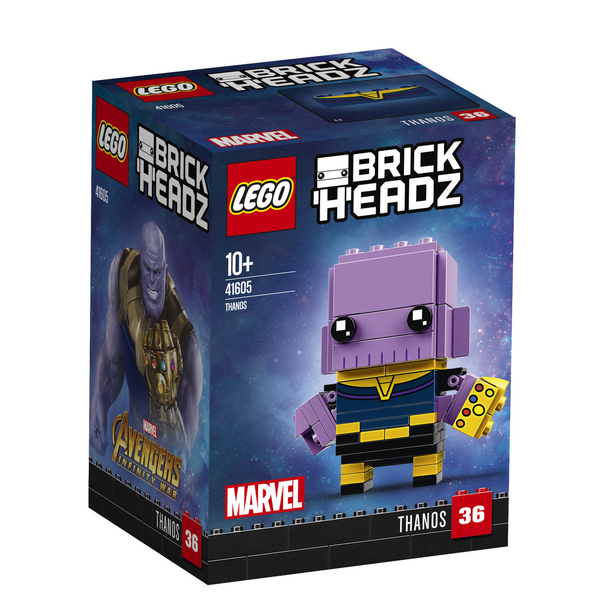 Zbuduj figurkę LEGO® BrickHeadz Thanosa z filmowego hitu Avengers: Infinity War. Figurka ma fioletową skórę, napierśnik, Rękawicę Nieskończoności i podstawkę do ekspozycji.