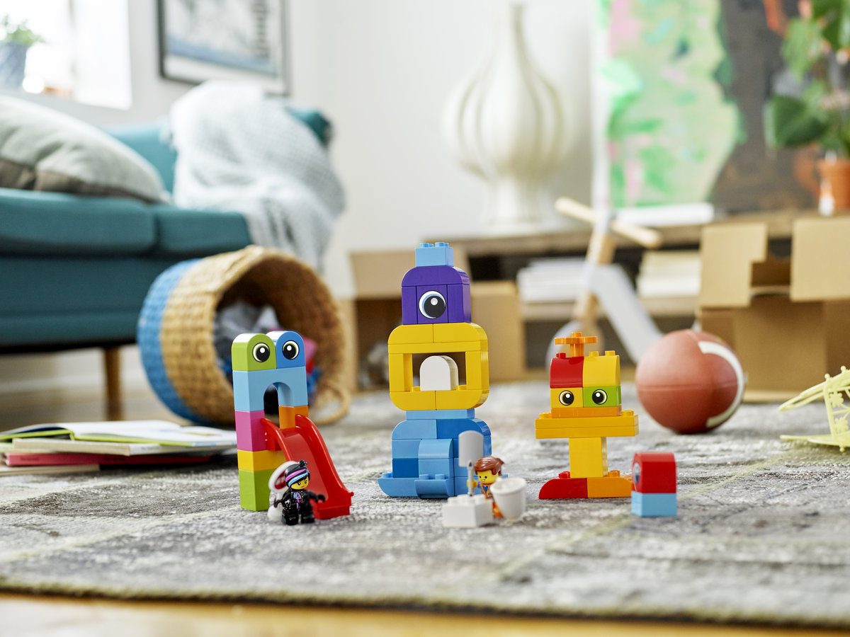 Wprowadź swojego maluszka w kolorowy, kreatywny świat filmu LEGO PRZYGODA 2™ z zestawem dla najmłodszych Goście z planety DUPLO u Emmeta i Lucy. Młodzi fani Emmeta i Lucy na pewno będą chcieli pomóc swoim ulubieńcom w obronie przed łatwymi do zbudowania kosmicznymi najeźdźcami. Kolorowe i duże klocki DUPLO można wymieszać, tak by maluchy mogły zbudować własnych kosmitów, rozwijając przy tym wyobraźnię i koordynację wzrokowo-ruchową. To pierwszy krok na drodze do zostania mistrzem konstrukcji! W zestawie dwie figurki LEGO DUPLO: Emmet i Lucy oraz czworo kosmicznych najeźdźców do zbudowania. Pomóż swojemu maluszkowi obronić Emmeta i Lucy przed kosmicznymi najeźdźcami! Wprowadź swojego maluszka w kolorowy, kreatywny świat filmu LEGO PRZYGODA 2™ z zestawem dla najmłodszych LEGO DUPLO 10895 Goście z planety DUPLO u Emmeta i Lucy. Młodzi fani Emmeta i Lucy na pewno będą chcieli pomóc swoim ulubieńcom w obronie przed łatwymi do zbudowania kosmicznymi najeźdźcami. Kolorowe i duże klocki DUPLO można wymieszać, tak by maluchy mogły zbudować własnych kosmitów, rozwijając przy tym wyobraźnię i koordynację wzrokowo-ruchową. To pierwszy krok na drodze do zostania mistrzem konstrukcji! W zestawie dwie figurki LEGO DUPLO: Emmet i Lucy oraz czworo kosmicznych najeźdźców do zbudowania.