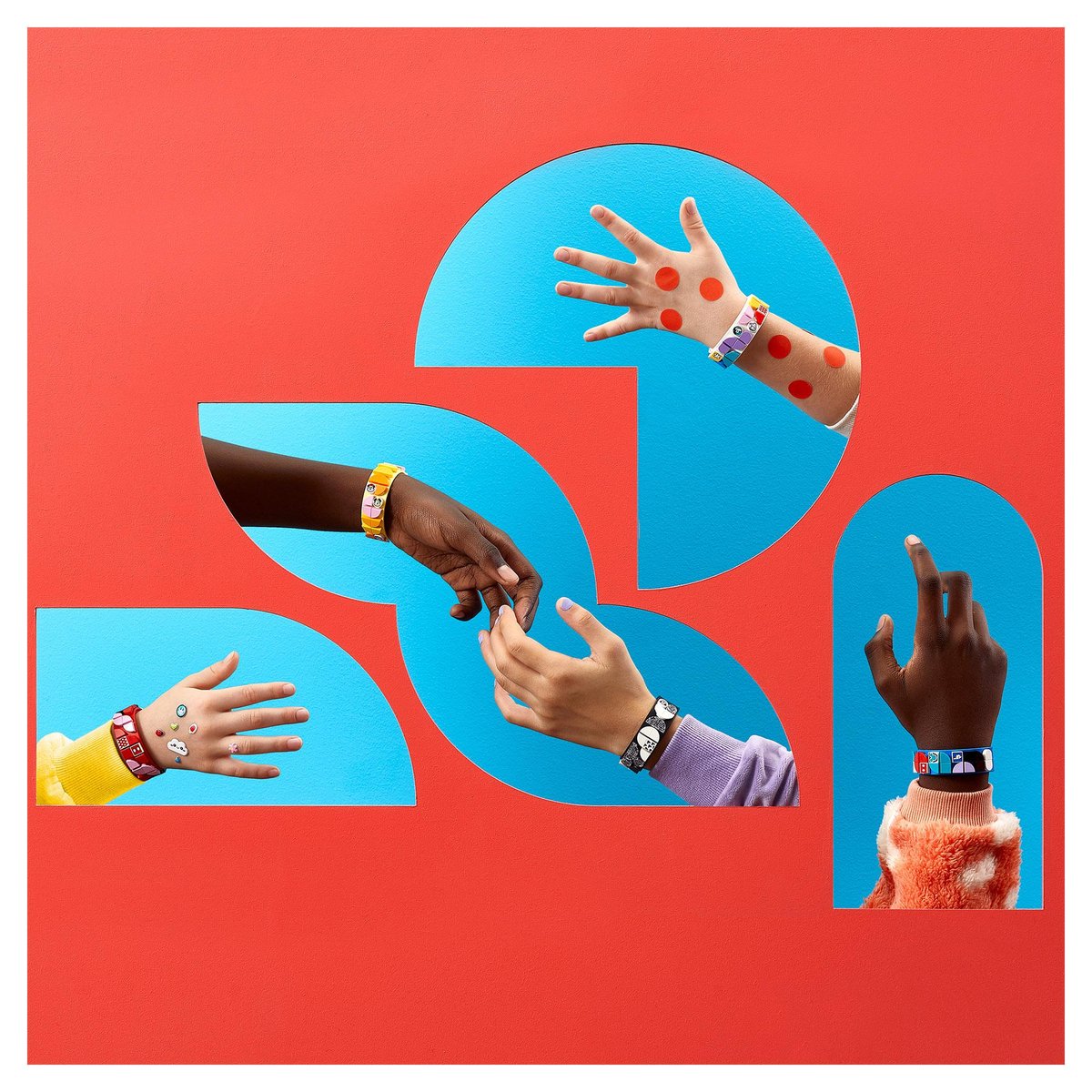 Ten odważny, kolorowy zestaw zawiera pięć bransoletek i ponad 340 płytek DOTS, w tym brokatowych i ozdobnych, które dodadzą polotu.