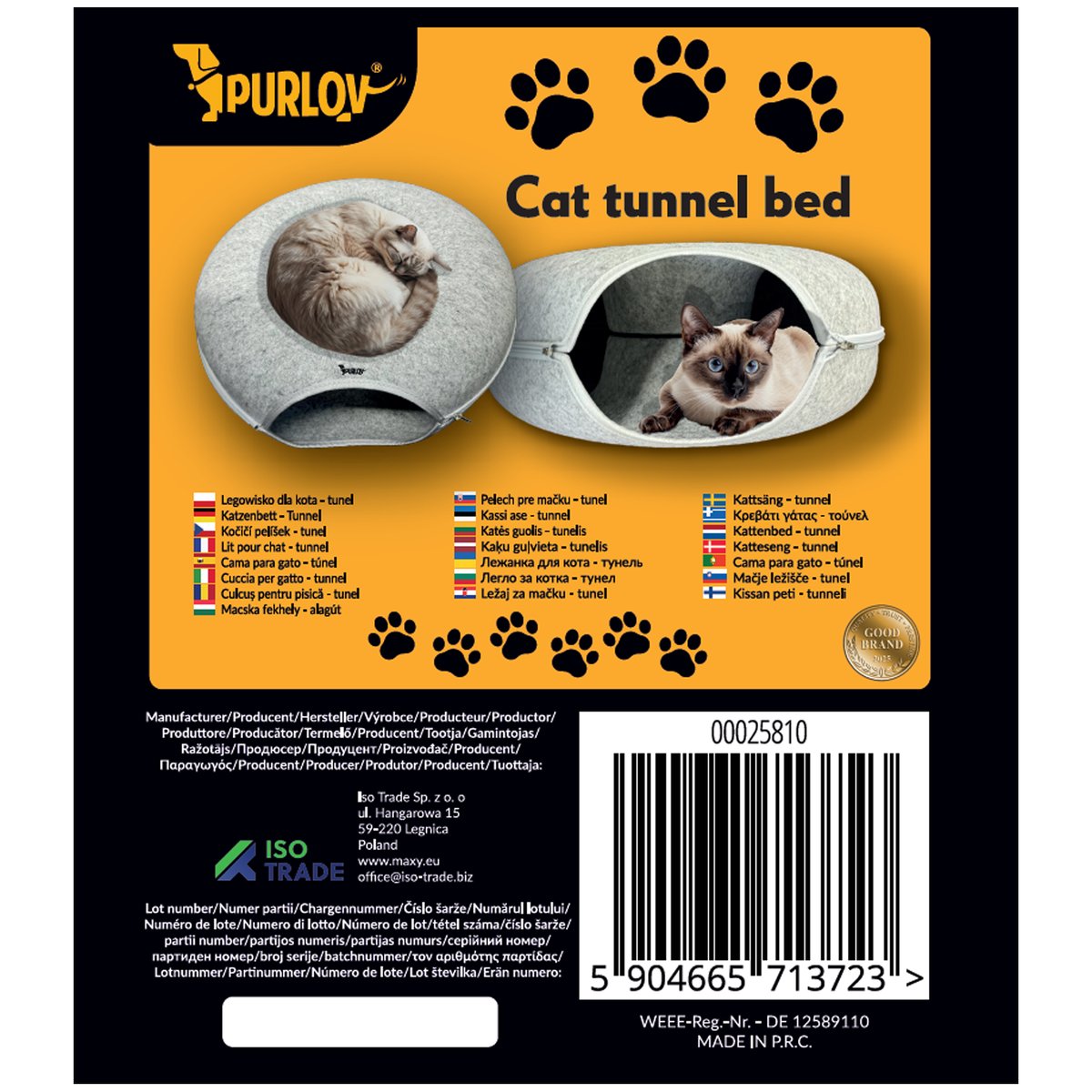 ✔️ kot rzeczywiście będzie korzystał z legowiska – filcowe legowisko PURLOV przyciąga naturalnie, jego przyjemna faktura, ergonomiczna forma i półmroczne wnętrze idealnie trafiają w kocie potrzeby, wystarczy je rozłożyć, a kot sam wejdzie i... nie będzie chciał wyjść!