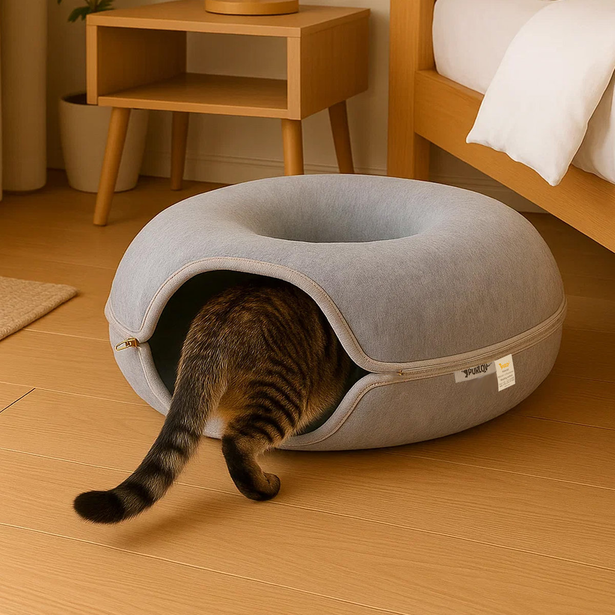 Legowisko dla kota, tunel antystresowy donut okrągły do leżenia dla fretki PURLOV! ✔️ kot rzeczywiście będzie korzystał z legowiska – filcowe legowisko PURLOV przyciąga naturalnie, jego ...