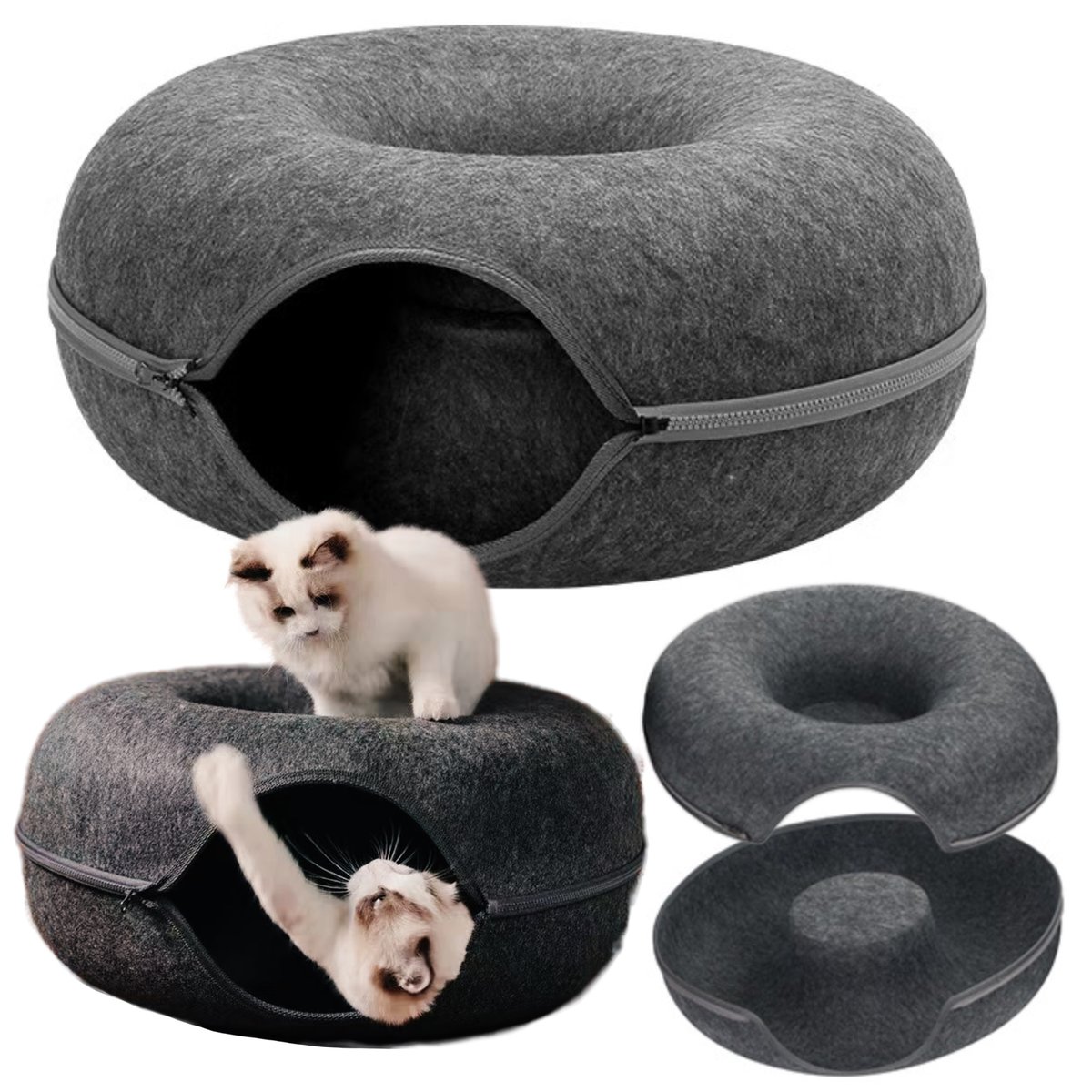 Legowisko dla kota tunel domek filcowy dwuczęściowy okrągły donut pączek Cechy produktu:Filcowy tunel domek dla