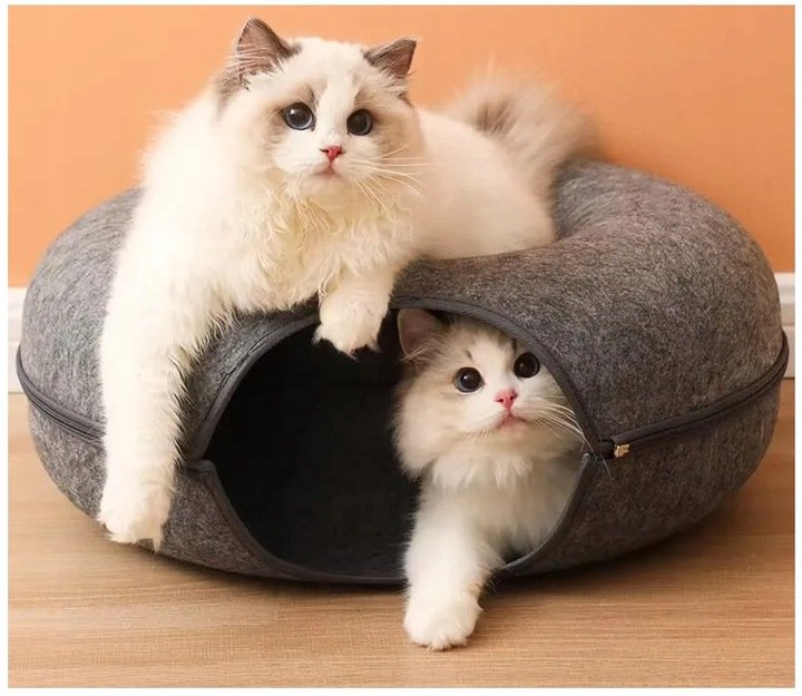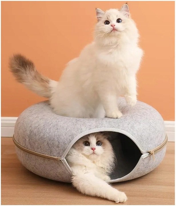 LEGOWISKO DLA KOTA TUNEL DONUT DOMEK ZABAWKA ANTYSTRESOWE PĄCZEK FILCOWE Długość 50 cm