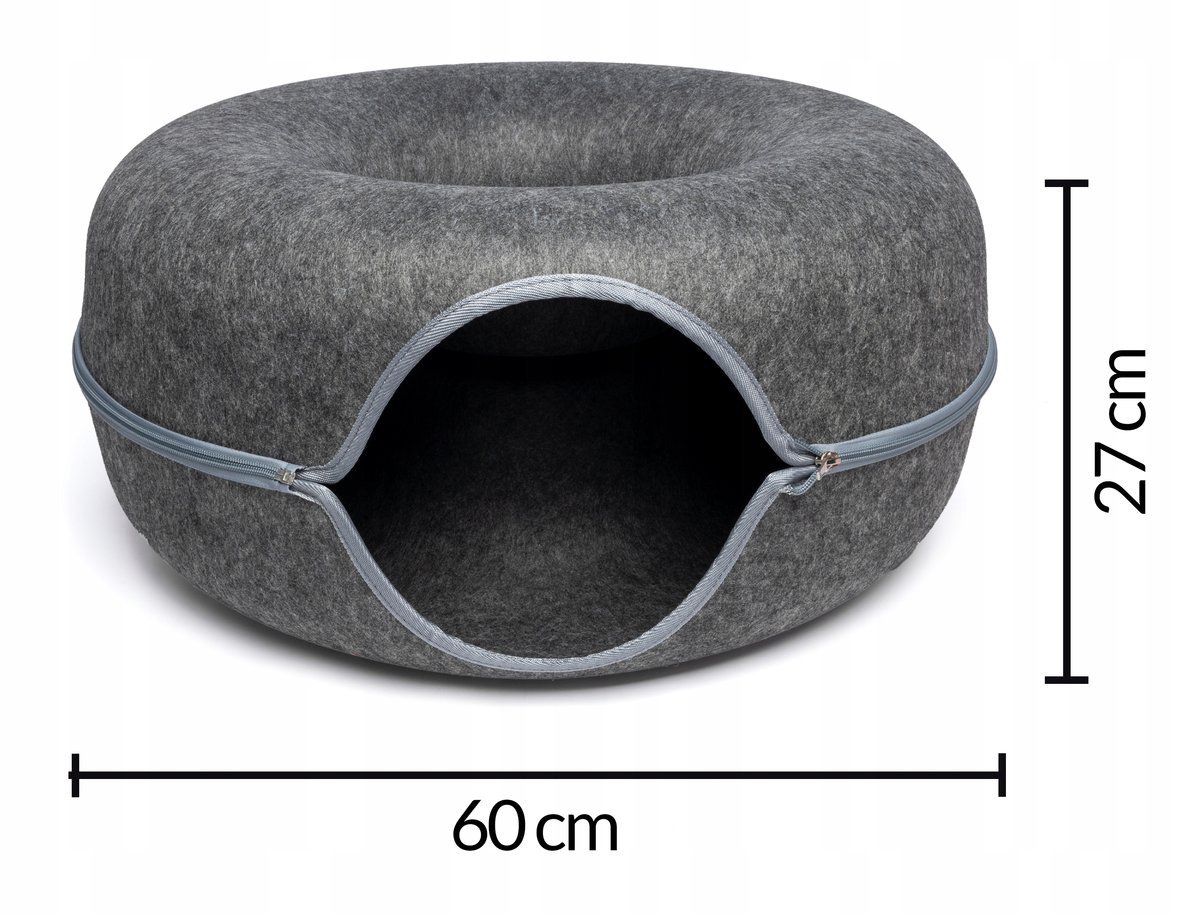 LEGOWISKO TUNEL DLA KOTA OKRĄGŁE DONUT DOMEK 60 CM CIEMNOSZARY ➡️ LEGOWISKO DONUT DLA KOTA Z TUNELEMLegowisko Donut to innowacyjne i stylowe rozwiązanie dla Twojego kota, ...