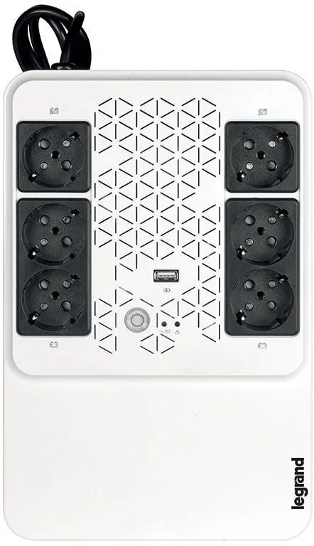 LEGRAND UPS Keor Multiplug 600 AVR 4+2 FR 310083UPS o mocy pozornej 600 VA wyposażony w elektroniczny układ AVR. Praca w trybie Line-Interactive. 6 gniazd zasilających, 1 gniazdo USB oraz RJ45.Moc ...