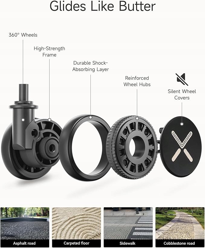 - ✅ 4 kółka obrotowe 360° – płynne, ciche i elastyczne prowadzenie walizki w każdym kierunku