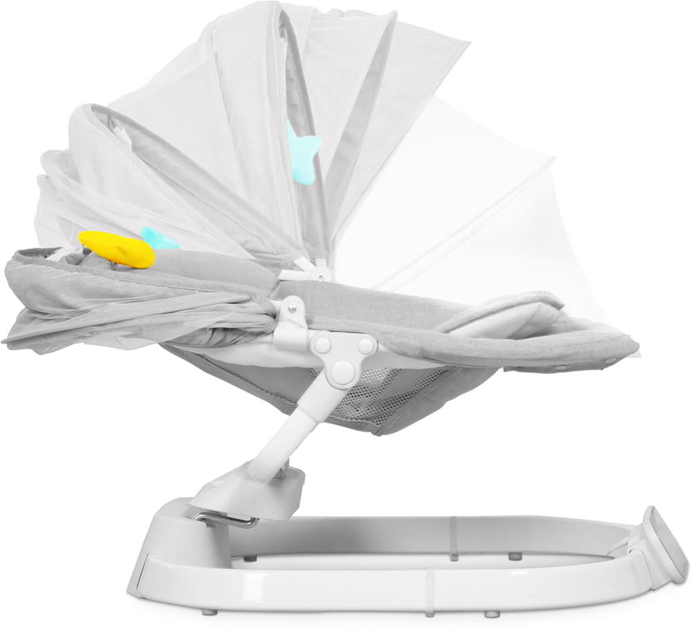 Bujaczek Neno to świetny towarzysz odpoczynku na świeżym powietrzu w przydomowym ogrodzie. Delikatna moskitiera, umieszczona w daszku, chroni malucha przed atakiem komarów, a bateryjne zasilanie pozwala na kilka godzin pracy urządzenia bez dostępu do prądu.