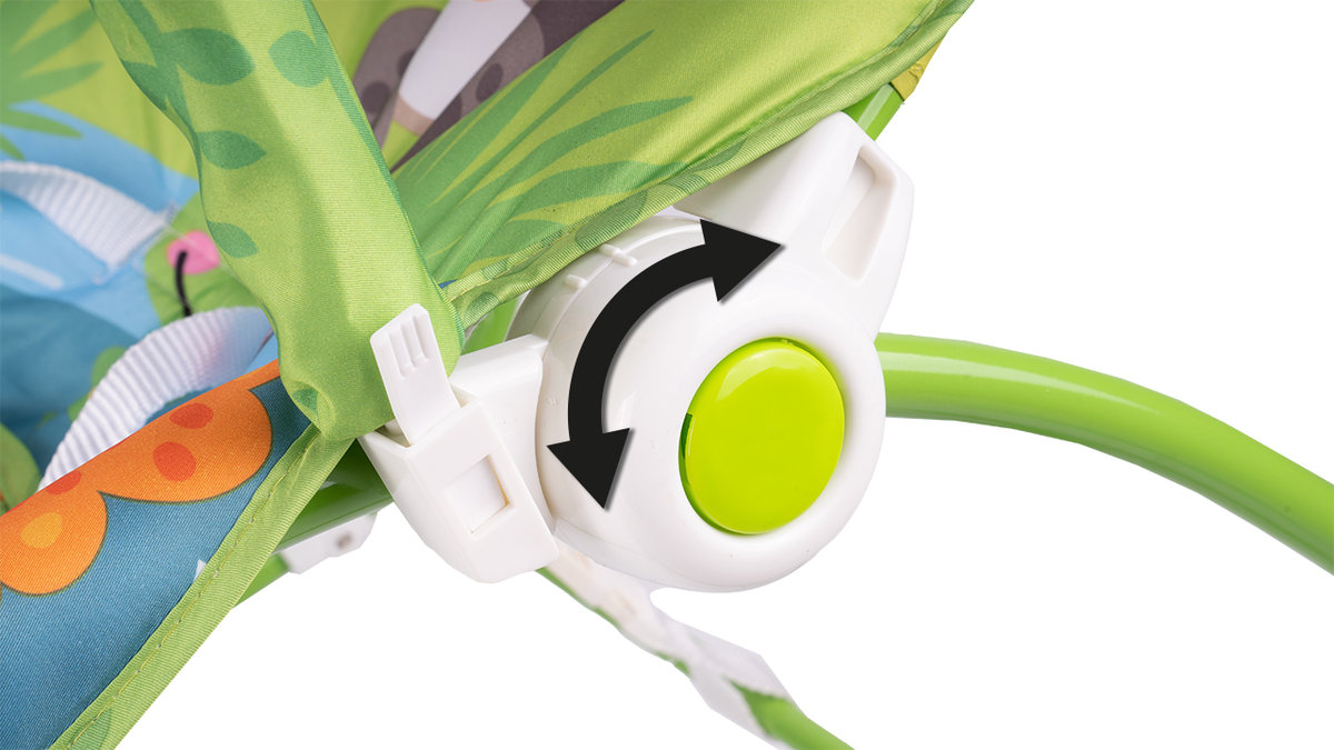 - Siedzisko odchylane jest w 2 pozycjach. Regulacja znajduję się z boku bujaka.