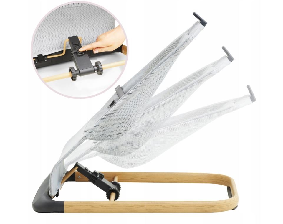 Maluszek wprawia leżaczek w kołysanie dzięki naturalnym ruchom ciała. Oprócz tego rodzic może samodzielnie bujać leżaczkiem. Delikatne ruchy kołysania wyciszają dziecko oraz stwarzają mu przyjemną i bezpieczną przestrzeń do rozwoju.