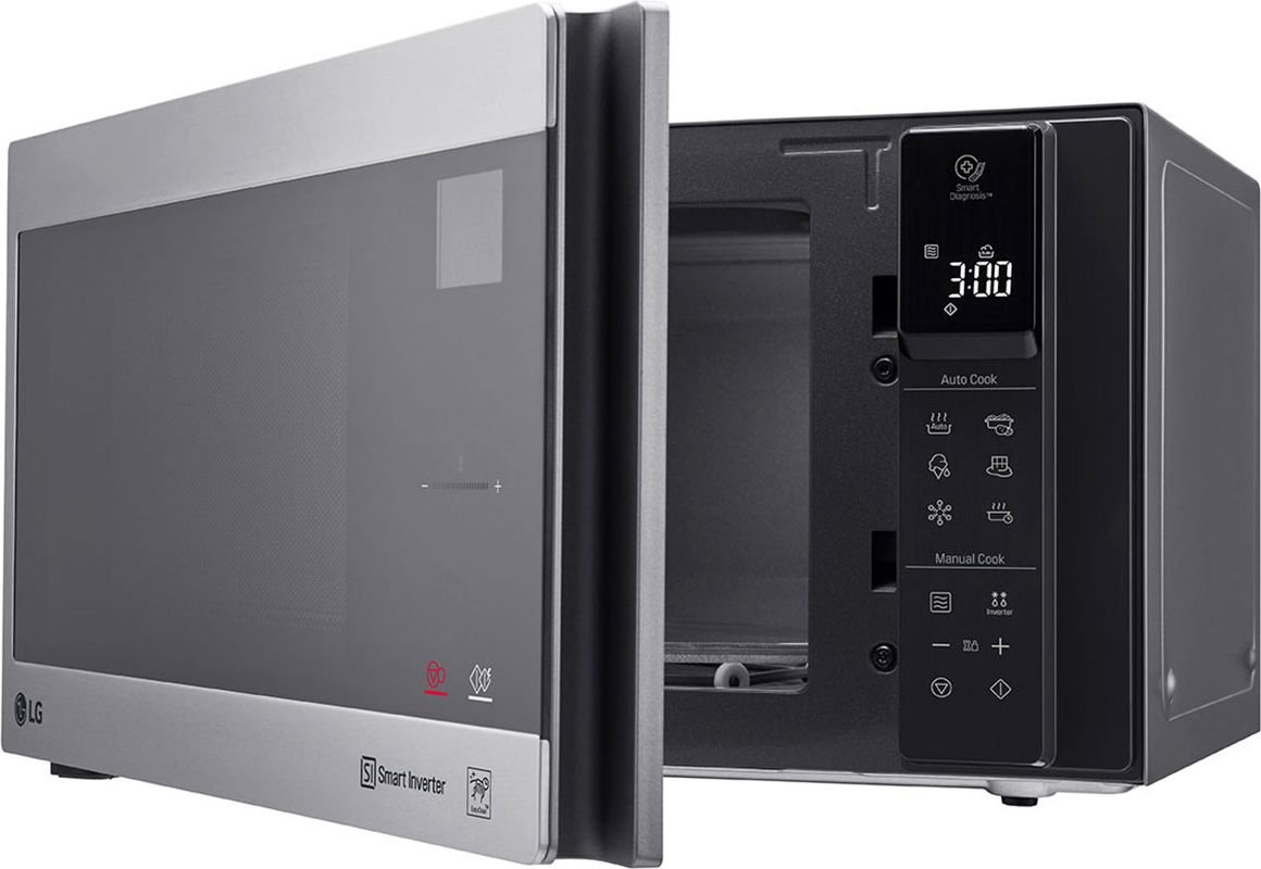 Ze względu na kompaktowy rozmiar LG NeoChef idealnie pasuje również do mniejszych kuchni. Mimo to komora gotowania jest bardzo obszerna, dzięki czemu przygotowywanie nieporęcznych potraw w kuchence mikrofalowej nie stanowi problemu. LG NeoChef jest więc prawdziwie wszechstronnym urządzeniem w Twojej kuchni, który ułatwia codzienne życie i jednocześnie nie zajmuje dużo miejsca lub powierzchni roboczej.