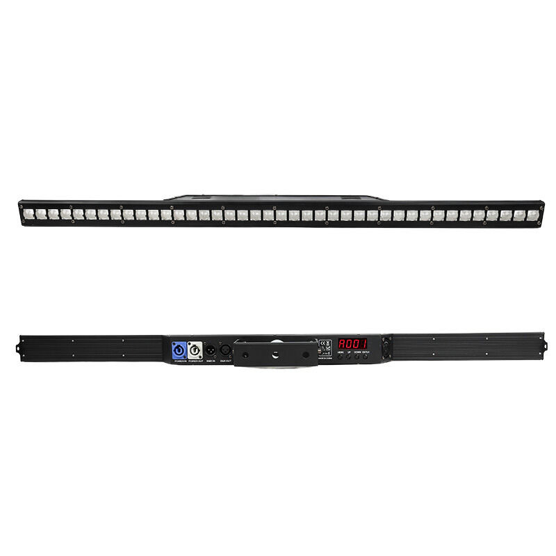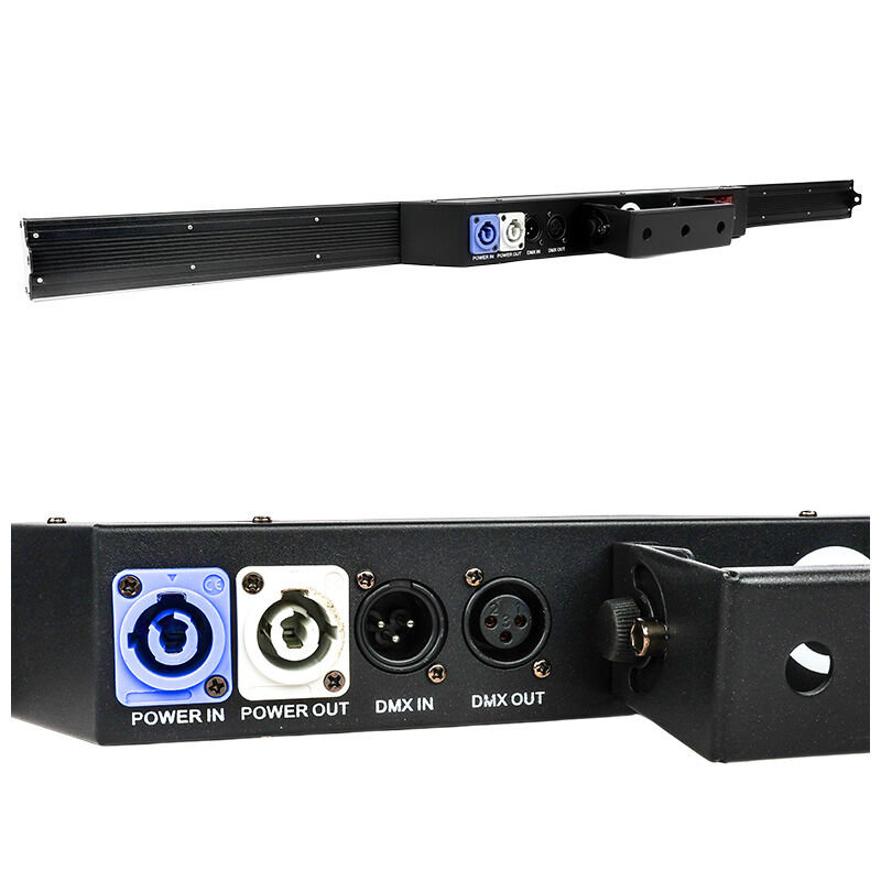 Listwa LED wyposażona jest w złącza powercon in/out, umożliwiające bezpieczne przekazywanie zasilania między urządzeniami. 3-stykowe złącza DMX zapewniają stabilne połączenia, co jest niezbędne podczas dużych produkcji scenicznych. Kompaktowa konstrukcja oraz lekkość sprawiają, że urządzenie jest wygodne w obsłudze i transporcie.
