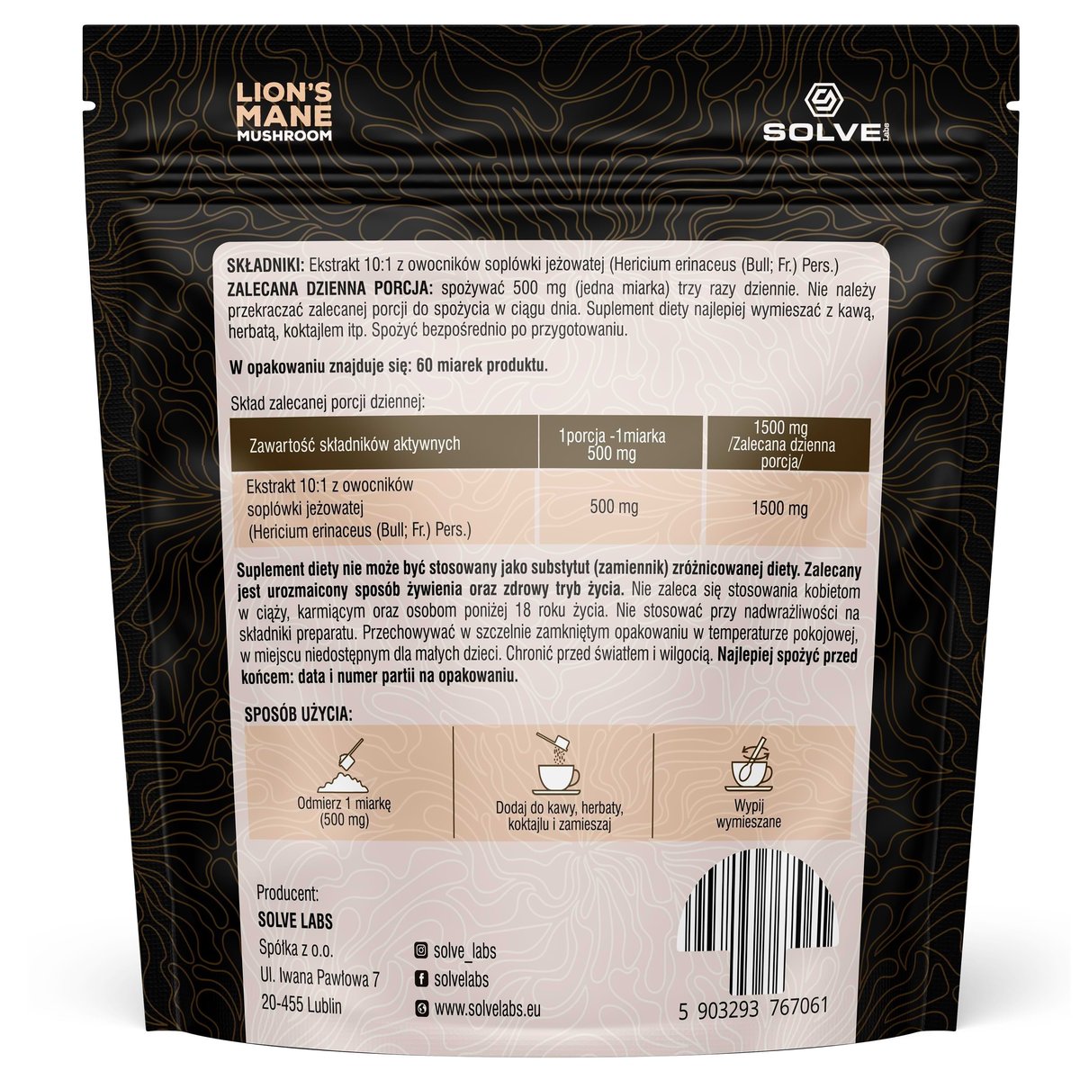 Właśnie zrecenzowałem Lion's Mane (Soplówka jeżowata) 10:1 Mushroom Powder 30 g / Solve Labs Suplement diety