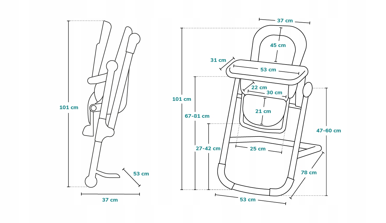 ✔️ 2-stopniowa regulacja tacy zapewnia doskonałe dopasowanie do dziecka.