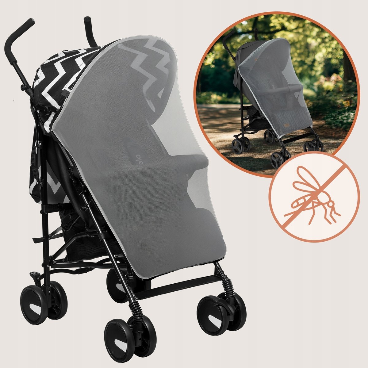 Dołączona do zestawu moskitiera jest uszyta z elastycznej tkaniny, dzięki czemu szczelnie okala wózek – skutecznie chroniąc maluszka przed insektami.