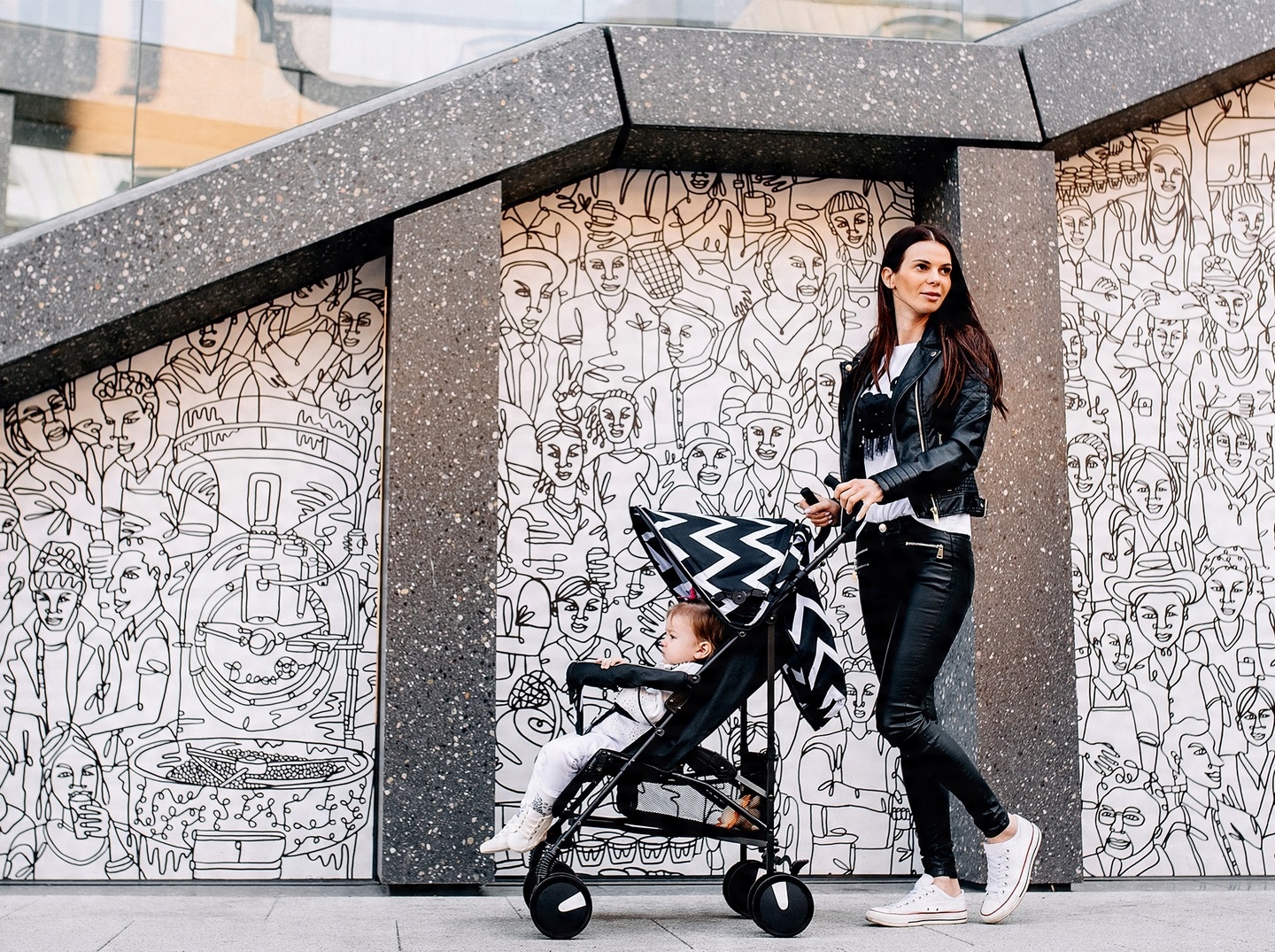 Umieszczenie hamulca na kołach pozwoli Ci również na stawianie dużych, swobodnych kroków – bez obawy o ewentualne zahaczenie nogą o belkę. To duże ułatwienie dla wysokich rodziców.