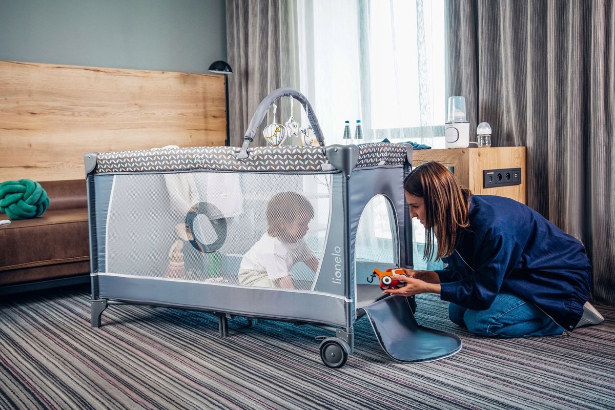 Dzięki możliwości zawieszenia materaca na dwóch poziomach wysokości Flower może pełnić rolę łóżeczka turystycznego już od pierwszych dni życia, a także miejsca zabaw dla starszaków