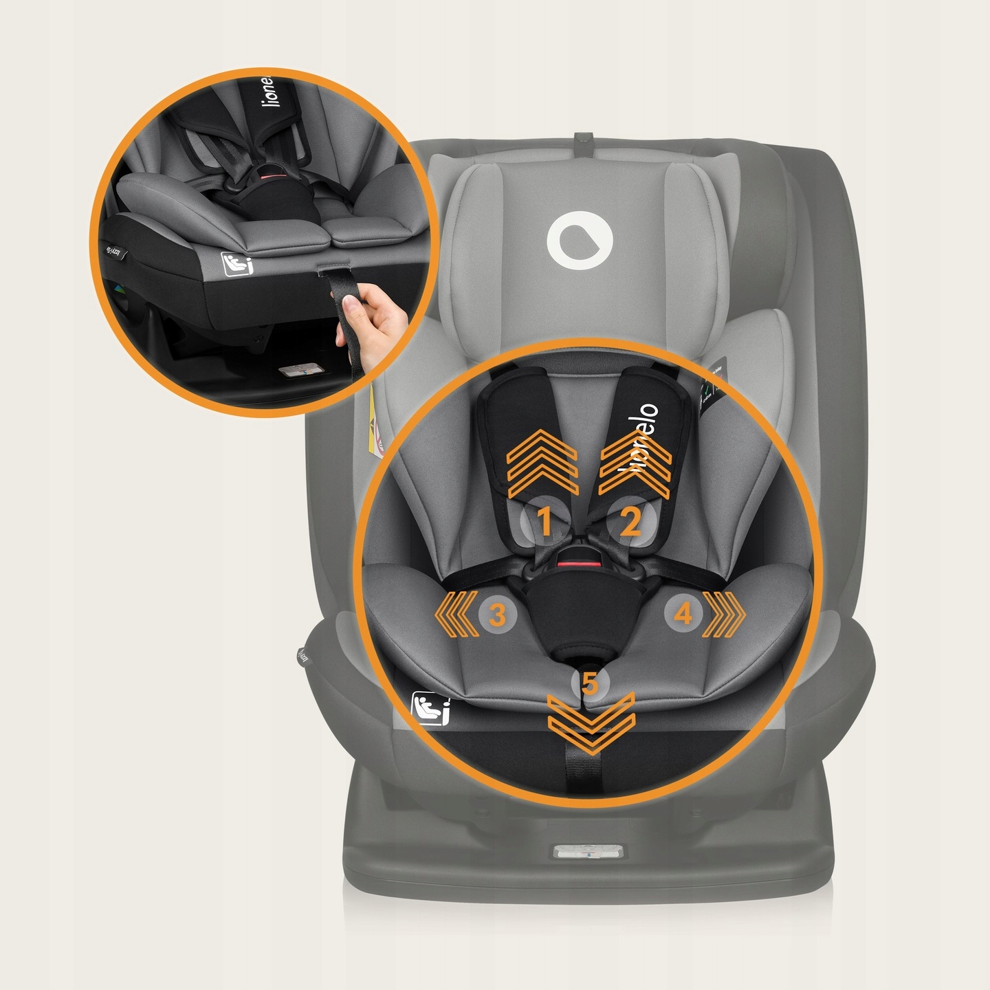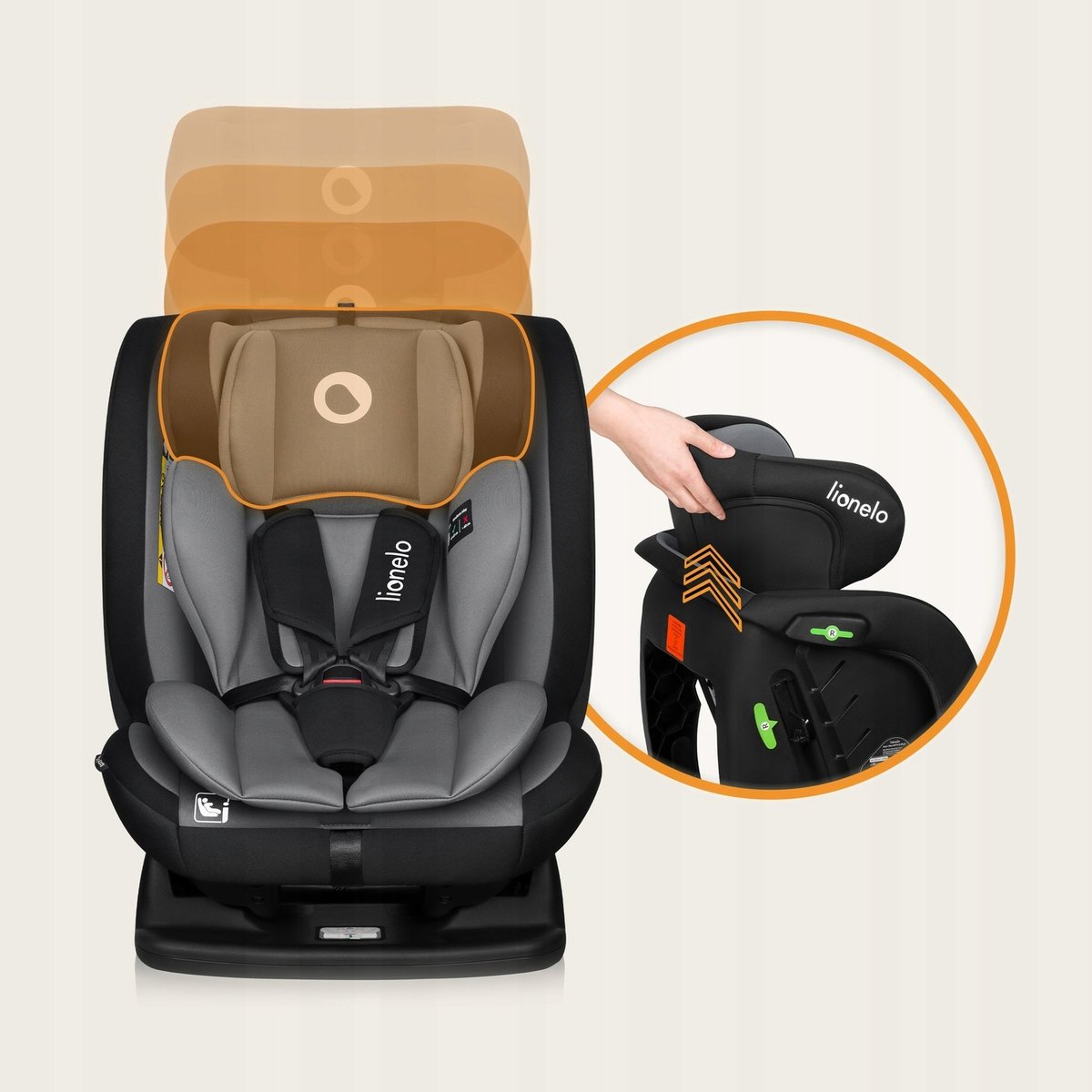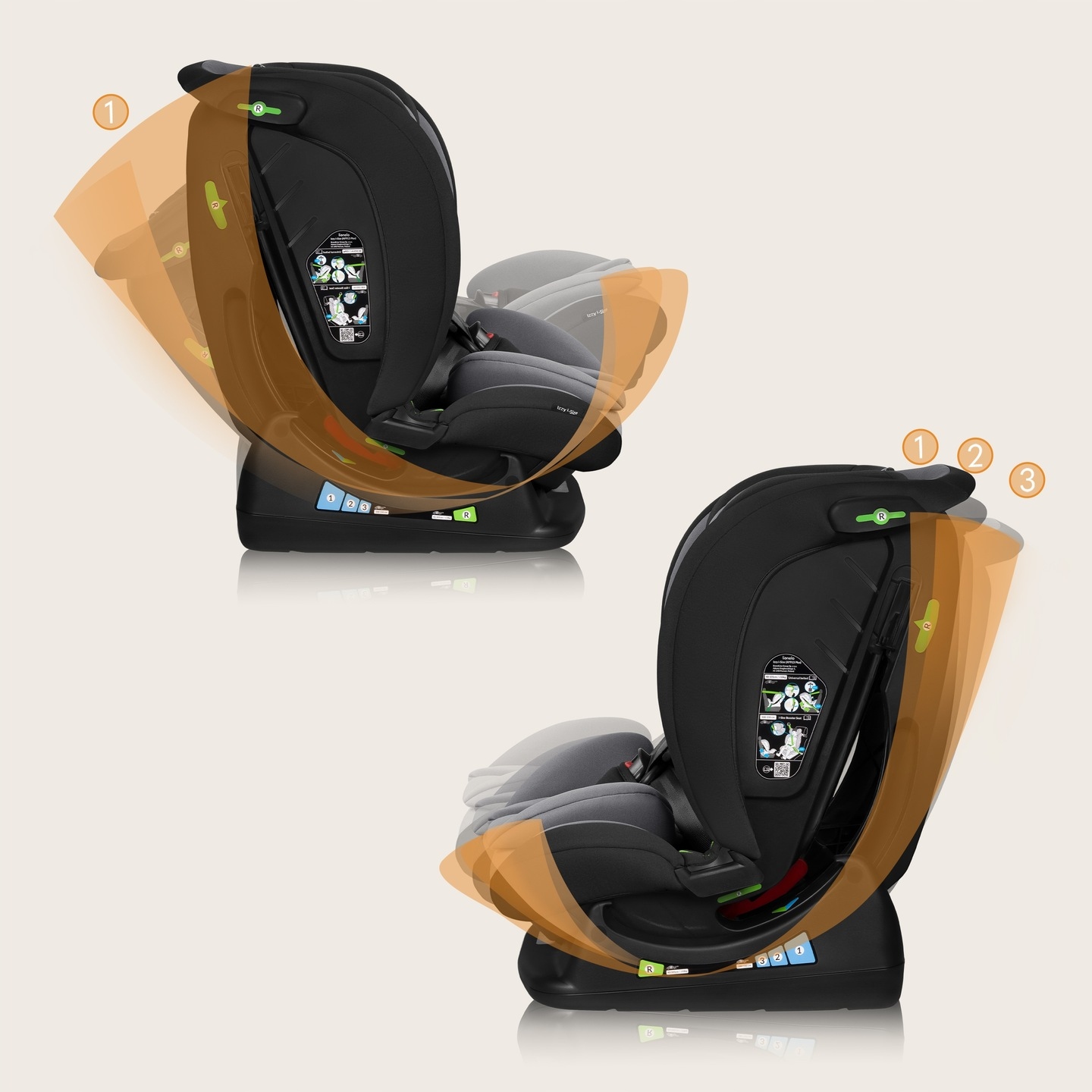 Co ważne Izzy i-Size pozwala na mocowanie fotelika w pozycji RWF (tyłem do kierunku jazdy) aż do osiągnięcia przez dziecko 105 cm – jest to rekomendowany oraz najbezpieczniejszy sposób przewożenia dziecka.