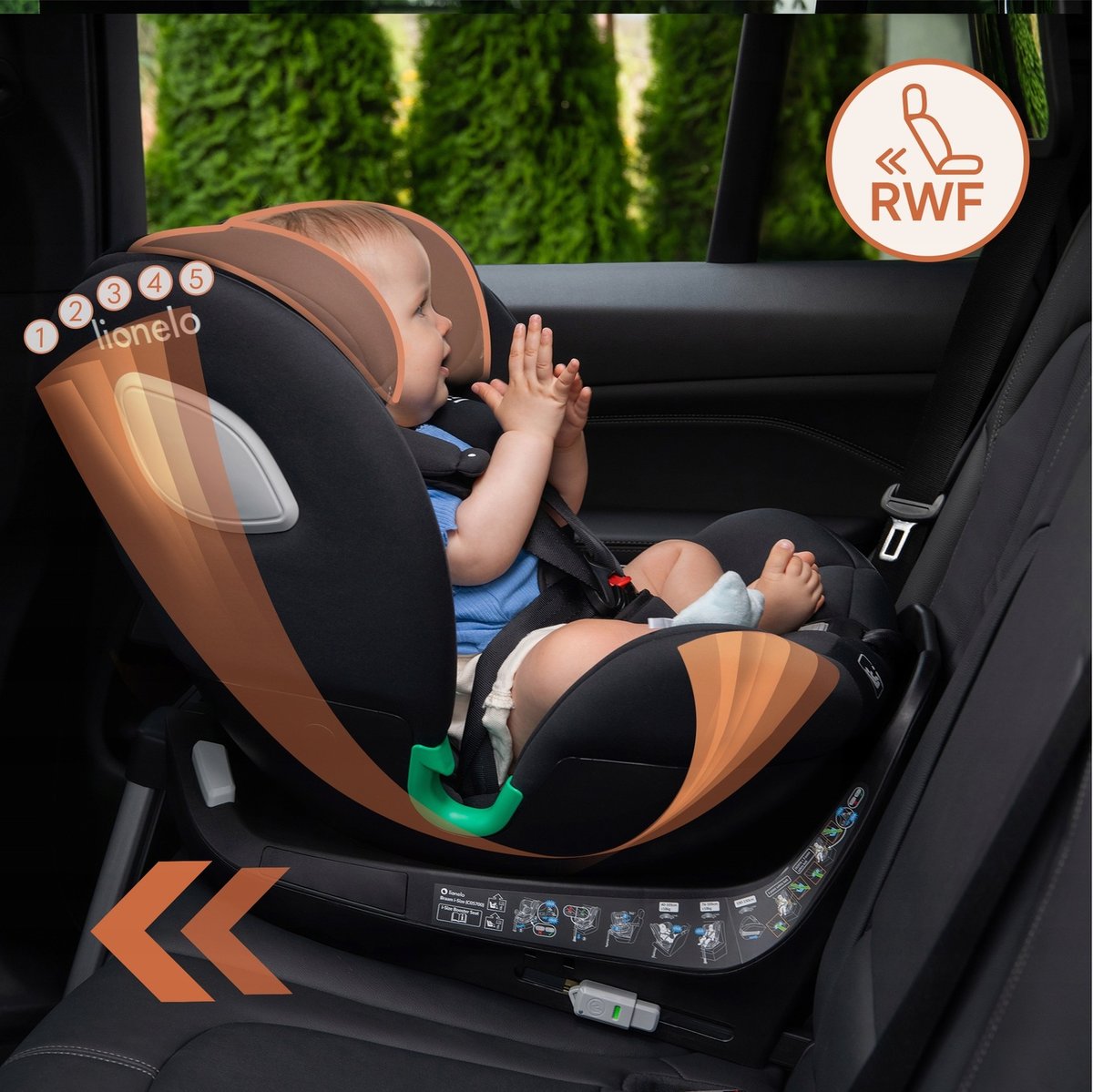 Zgodnie z najnowszymi rekomendacjami specjalistów, jazda tyłem do kierunku jazdy to najbezpieczniejszy sposób przewożenia maluszka, stąd zalecamy, aby podróżować w pozycji RWF najdłużej jak to możliwe – w przypadku fotelika Braam i-Size aż do 105 cm wzrostu (około 4 lat).