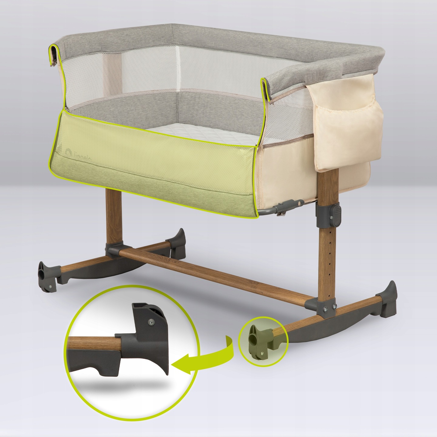 ✔ Wytrzymałe mocowanie z łóżkiem rodziców przez pasy bezpieczeństwa ze ściągaczem. Montaż jest bardzo prosty i zajmuje zaledwie kilka chwil.